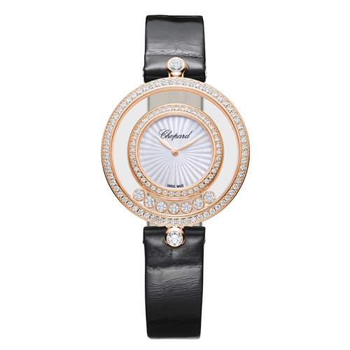 Chopard/萧邦 Happy Diamonds系列玫瑰金石英机芯黑色鳄鱼皮女士镶钻腕表32毫米209426-5201