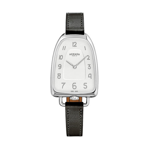 HERMES/爱马仕 Galop系列 女士石英机芯水晶银纹表盘精钢表壳和小牛皮表带40,8x26毫米W047872WW00