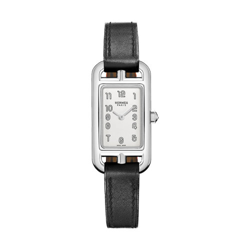 HERMES/爱马仕 Nantucket系列 女士石英机芯乳白色银表盘精钢表壳和小牛皮表带腕表17x23毫米W044186WW00