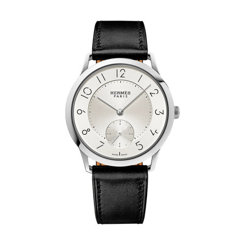 HERMES/爱马仕 GM Manufacture系列 男士自动机械乳白色银色表盘精钢表壳和小牛皮表带腕表39.5毫米W052839WW00