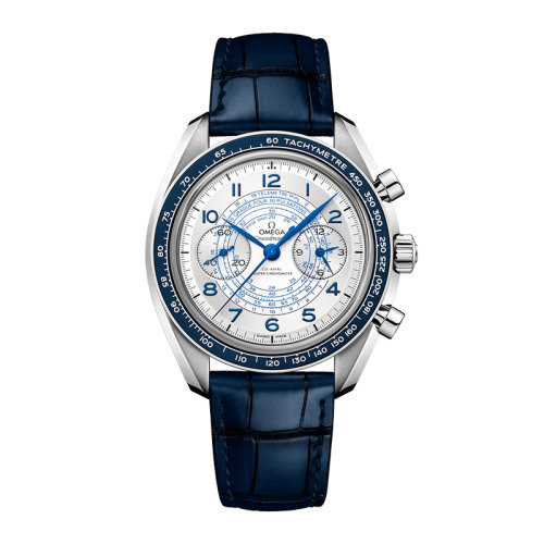 OMEGA/欧米茄 22年春夏新款 超霸系列 男士银色表盘手动上链计时机芯精钢表壳蓝色皮表带腕表43毫米329.33.43.51.02.001