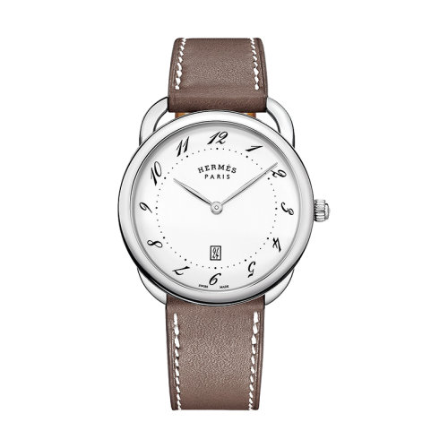 HERMES/爱马仕 Arceau系列 男士石英机芯白色漆面表盘精钢表壳和小牛皮表带腕表40毫米W055559WW00