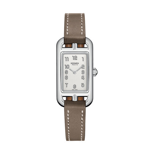HERMES/爱马仕 Nantucket系列 女士石英机芯乳白色银色表盘光滑小牛皮表带钢表壳手表W044189WW00