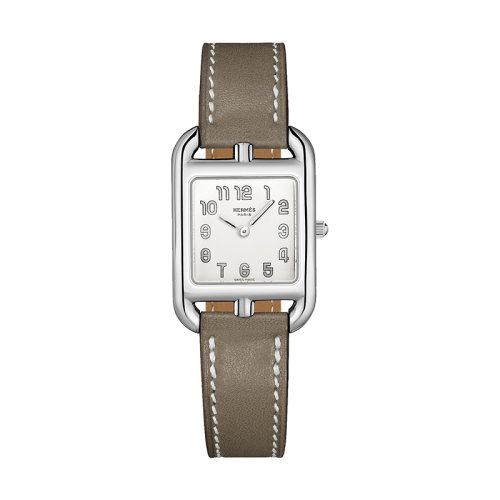 HERMES/爱马仕 Cape Cod系列 女士石英机芯乳白色银表盘精钢表壳和小牛皮表带腕表23x23毫米W040245WW00