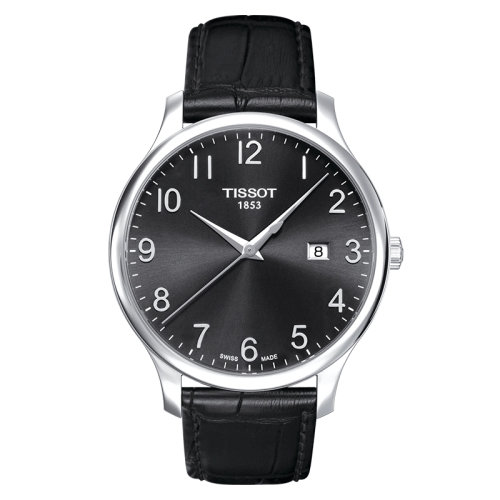 TISSOT/天梭 俊雅系列精钢表壳黑色皮革表带男士石英腕表 42毫米