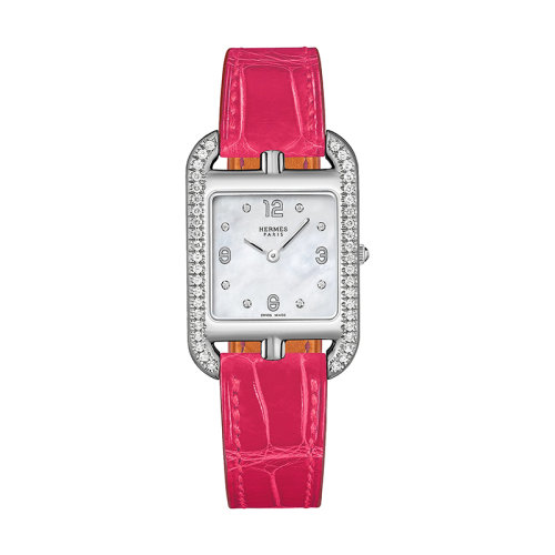 HERMES/爱马仕 Cape Cod系列 男士石英机芯天然白色珍珠母贝镶嵌表盘腕表精钢表壳和鳄鱼皮表带23x23毫米W044222WW00