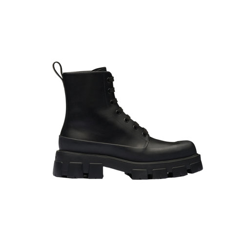 PRADA/普拉达 22年新款 男士黑色皮革饰有金属孔眼鞋带橡胶鞋底中帮靴子2TG207_070_F0002_F_G001