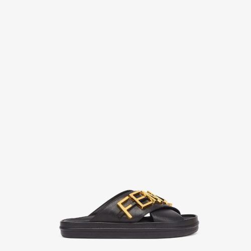 FENDI芬迪 22年春夏 女士 拖鞋 黑色皮凉鞋 8X8289AI1RF1H1K