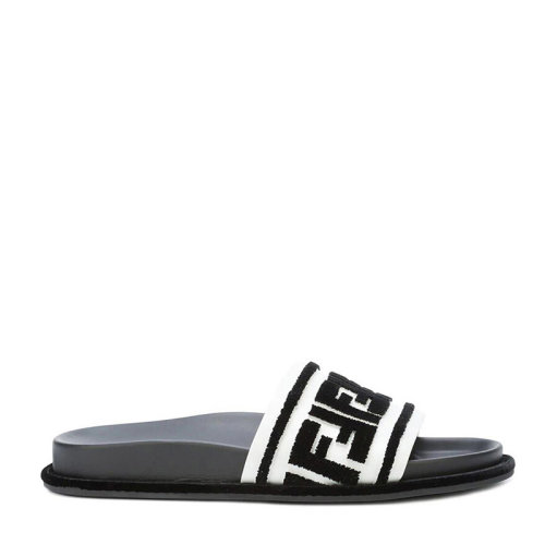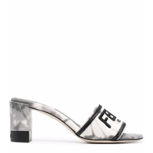 FENDI/芬迪 女士 鞋靴 白色黑色拼色字母LOGO刺绣粗跟凉鞋拖鞋 女士凉拖