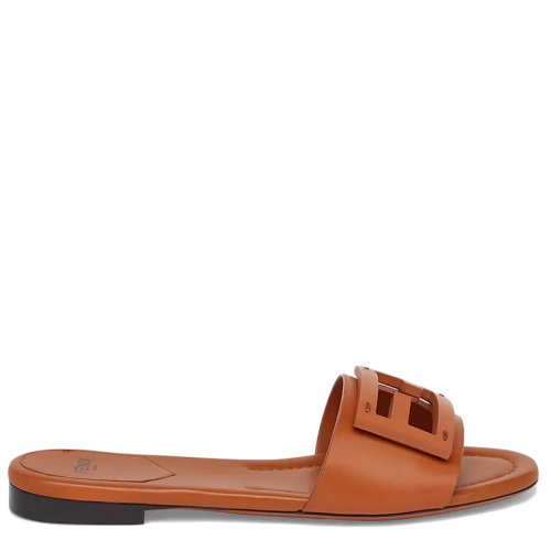 FENDI/芬迪 女士棕色皮革FF Baguette图案凉拖8R8136AE7TF1C4R