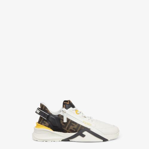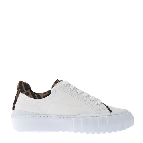 FENDI/芬迪【21春夏新款】女士白棕拼色经典双F字母徽标装饰系带运动鞋休闲鞋小白鞋帆布鞋平底鞋单鞋女鞋 8E8110-AF5R-F1DV4