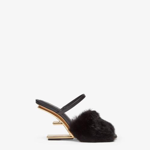 FENDI芬迪 22年春夏 女士 高跟鞋 黑色貂皮高跟凉鞋 8R8212AHGHF0ABB