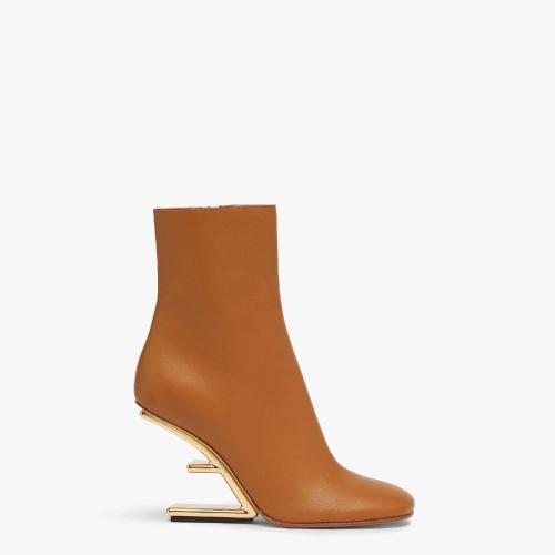 FENDI芬迪 22年秋冬 女士 短靴 棕色皮革高跟及踝靴 8T8230NBAF0QB7