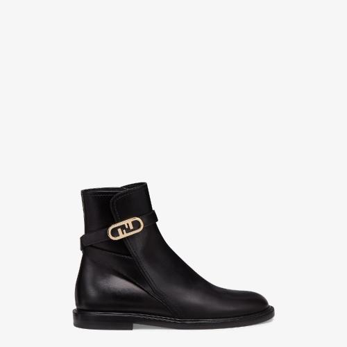 FENDI芬迪 22年春夏 女士 短靴 黑色皮革低跟靴 8T8239NA7F0QA1