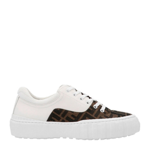 FENDI/芬迪 女士棕色绒面革材质白色系带低帮运动鞋 8E8252AKXXF1IE4