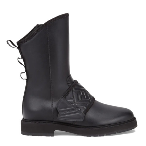 FENDI/芬迪 女士黑色经典双F徽标压花标内里羊毛侧面拉链鞋尾缎带踝靴短靴马丁靴作战靴女靴 8T8076-AEGD-F08M4