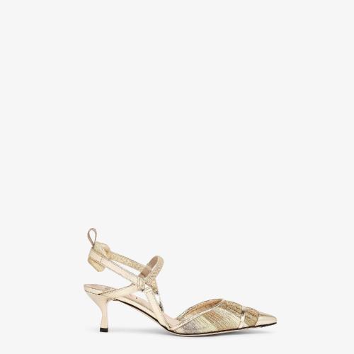 FENDI芬迪 22年秋冬 女士 高跟鞋 金色布料中跟露跟鞋 8J8006AI1MF1H0T