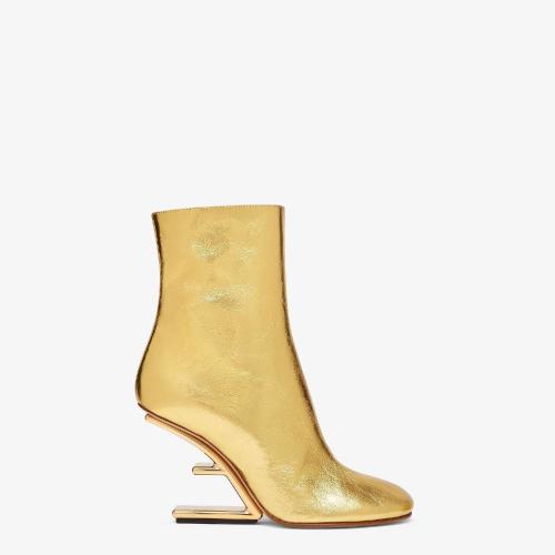 FENDI芬迪 22年秋冬 女士 坡跟凉鞋 金色纳帕皮高跟凉鞋 8R8212VH6F0QD2