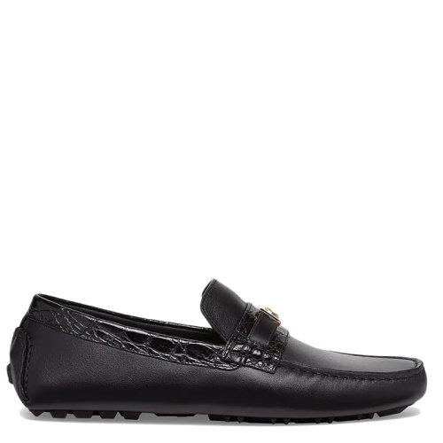 FENDI/芬迪 男士黑色皮革金属FF Baguette搭扣和凯门鳄式便鞋7D1385AE82F0UP9