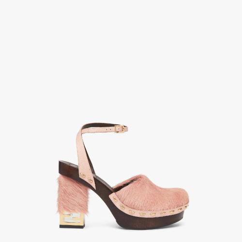 FENDI芬迪 22年秋冬 女士 高跟凉鞋 粉红色马毛高跟木底鞋 8Z837_LJ2F1JG2