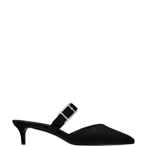HERMES/爱马仕 22年秋冬新款 Blink系列 女士黑色山羊绒面革饰水钻Hapi搭扣中跟穆勒鞋凉拖H202007Z02370