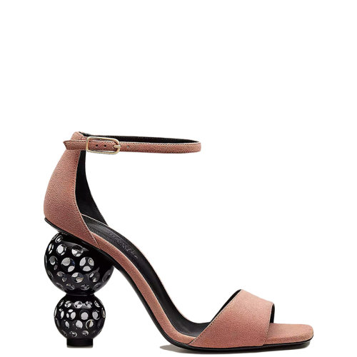 HERMES/爱马仕 22年秋冬新款 Dolly系列 女士黎明粉色山羊绒面革搭配球形建筑鞋跟凉鞋H212003Z9M370