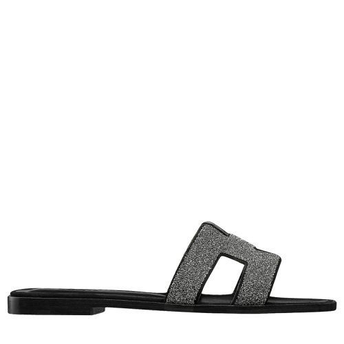 HERMES/爱马仕 2021年新款 女士黑色水晶粉和山羊绒麂皮奥兰凉鞋H202039Z02350