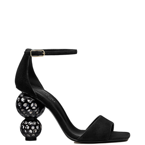 HERMES/爱马仕 22年秋冬新款 Dolly系列 女士黑色山羊绒面革搭配球形建筑鞋跟凉鞋H212003Z02375