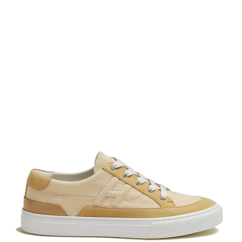 HERMES/爱马仕 22年秋冬新款 Deep系列 女士米黄色灯芯绒面料拼山羊绒面革运动鞋H222189ZB5370