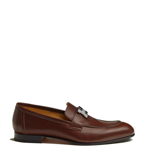 HERMES/爱马仕 22年秋冬新款 Paris系列 男士桃花心木棕色山羊皮乐福鞋H202926ZA9N400