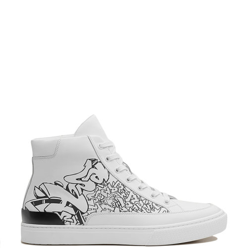 HERMES/爱马仕 22年秋冬新款 District系列 男士黑色/白色小牛皮印花高帮运动鞋H221906ZH93400