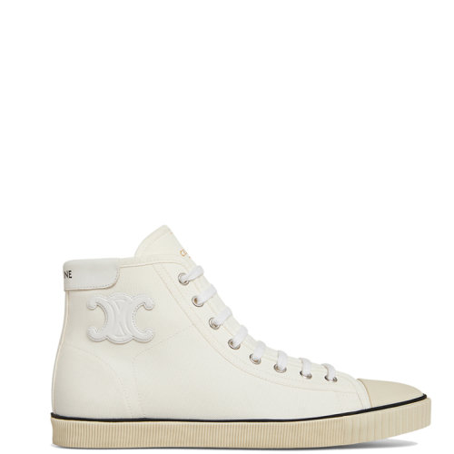 CELINE/赛琳 22年早春新款 BLANK系列 女士米白色织物/牛皮革侧面TRIOMPHE贴饰高帮运动鞋帆布鞋343202006C.01OW