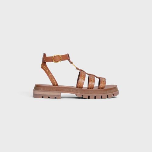 CELINE赛琳思琳 22年秋冬 女士 平底凉鞋 CLEA TRIOMPHE植鞣牛皮革粗跟饰钉罗马凉鞋 348483023