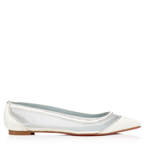 Christian Louboutin/克里斯提鲁布托 女士米白色缎纹绉纱和同色系网眼水钻芭蕾舞鞋3200925W021