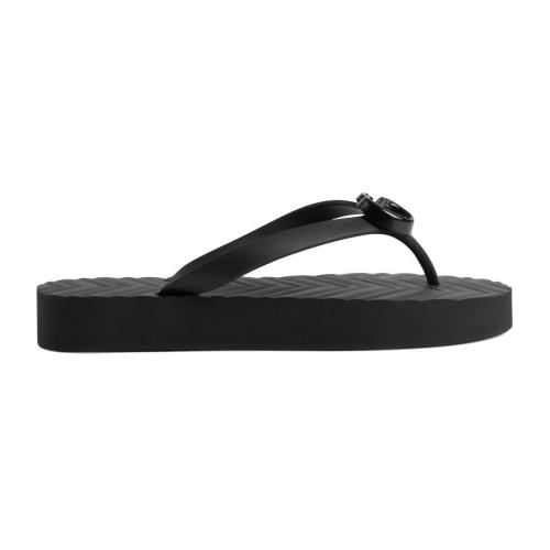 GUCCI/古驰 22秋冬新款 女士黑色橡胶后帮LOGO标识双G平底凉鞋693289XJEFZ7388