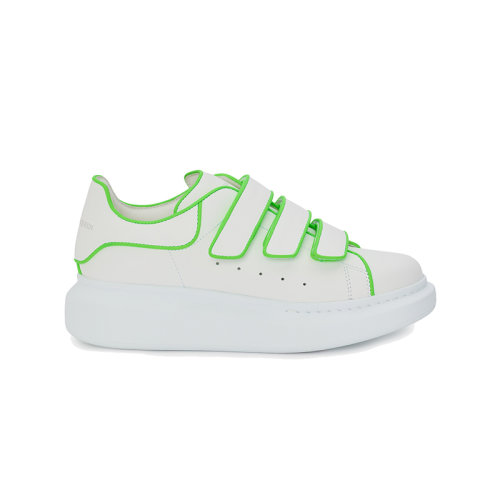 Alexander McQueen/亚历山大麦昆 22年秋冬新款 女士白色/酸性绿色牛皮革三绑带阔型运动鞋721410WHGPF8964