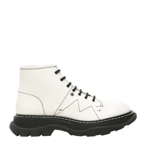 ALEXANDER MCQUEEN 亚历山大·麦昆 女士鞋靴 白色系带圆头短靴踝靴 女士短靴