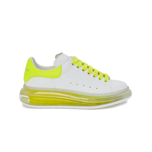 Alexander McQueen/亚历山大麦昆 22年秋冬新款 女士白色/酸性黄色牛皮革阔型透明底运动鞋718255WICGN8953
