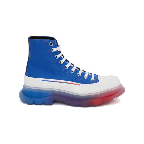 Alexander McQueen/亚历山大麦昆 22年秋冬新款 Tread Slick系列 男士蓝色棉质半透明彩虹鞋底高帮运动鞋帆布鞋705659W4TGE1141