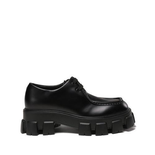 PRADA/普拉达 22年新款 Monolith系列 男士黑色亮面皮革系带皮鞋2EG394_B4L_F0002_F_G000