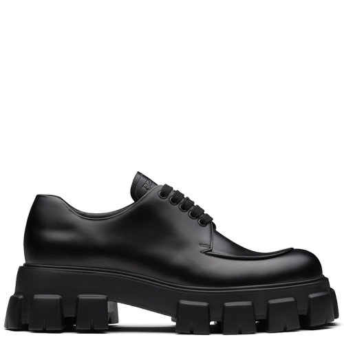 PRADA/普拉达 Monolith系列 男士黑色亮面皮革系带鞋2EE356_B4L_F0002