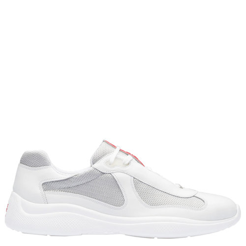 PRADA/普拉达 America's Cup系列 男士白色/银色小牛皮和织物面料运动鞋4E3337_6GW_F0J36