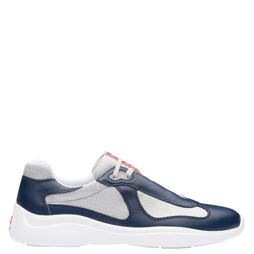 PRADA/普拉达 America's Cup系列 男士蓝色/银色小牛皮和织物面料运动鞋4E3337_6GW_F0W4C