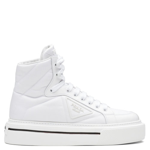 PRADA/普拉达 Macro Re-Nylon系列 女士白色再生尼龙和亮面皮革高帮运动鞋1T642M_3LF5_F0009_F_B045