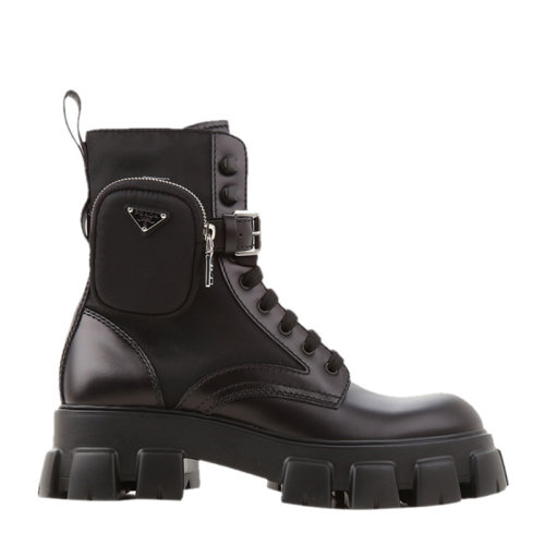 PRADA/普拉达 Monolith系列 男士黑色皮革和尼龙中筒靴2UE007_3L09_F0002_F_D002