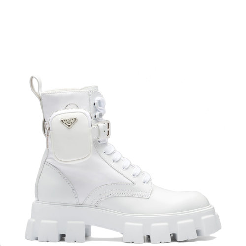 PRADA/普拉达 22年新款 Monolith系列 男士白色亮面皮革和尼龙绑带中筒靴马丁靴2UE007_3LFR_F0009_F_D002