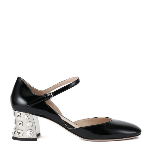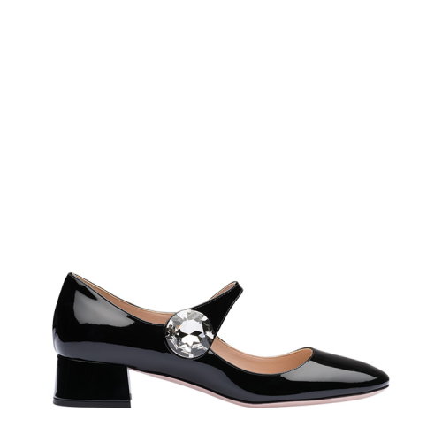 MiuMiu/缪缪 黑色 女士仿水晶装饰漆皮玛丽珍中跟鞋 5I654C_JHR_F0002_F_035