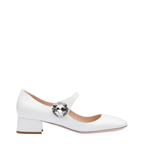 MiuMiu/缪缪 白色 女士仿水晶装饰漆皮玛丽珍中跟鞋 5I654C_JHR_F0009_F_035