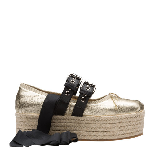 Miu Miu/缪缪 女士皮革绑带式草底编织厚底芭蕾舞松糕鞋 5F767A_3K6Q_F0U6F_F_045