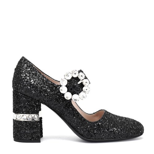 MiuMiu/缪缪 黑色 女士仿水晶装饰跟玛丽珍中跟鞋 5I966C_XWA_F0002_F_055